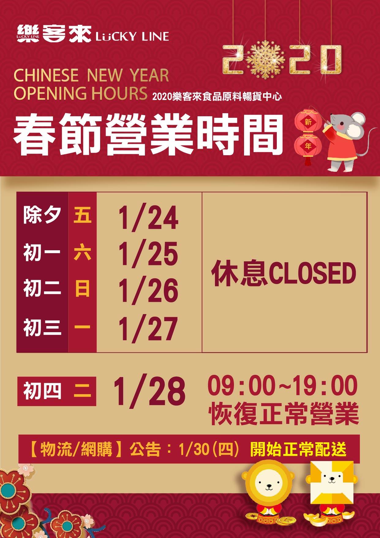 2020 春節營業時間公告