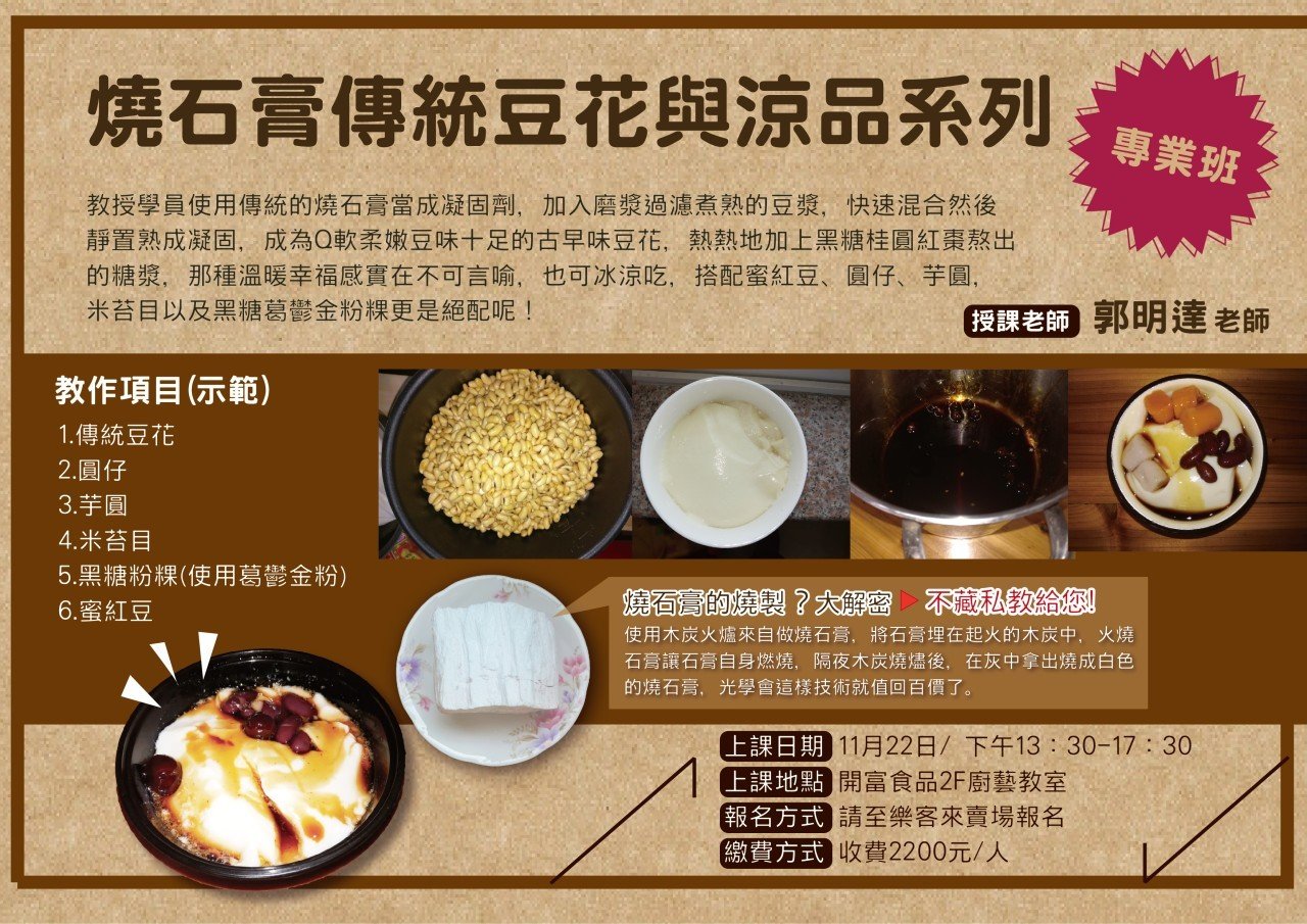 就在 #燒石膏傳統豆花與涼品系列專業班