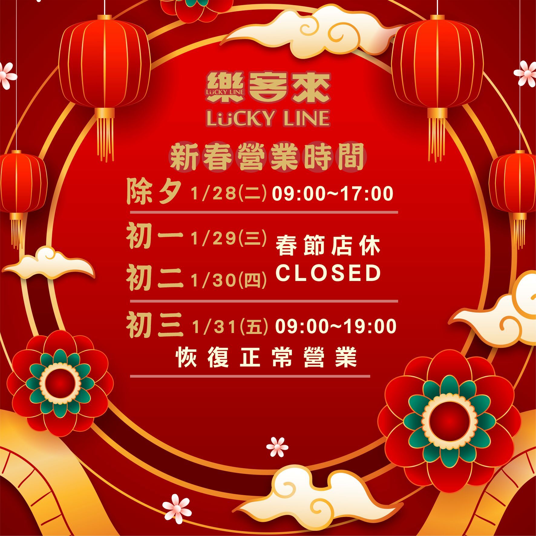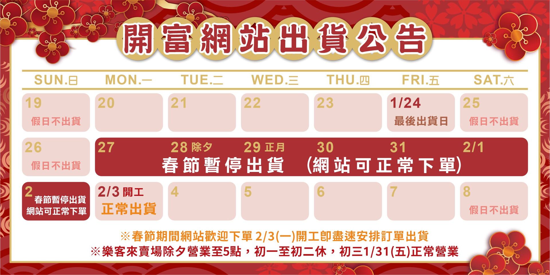 2025春節假期營運公告