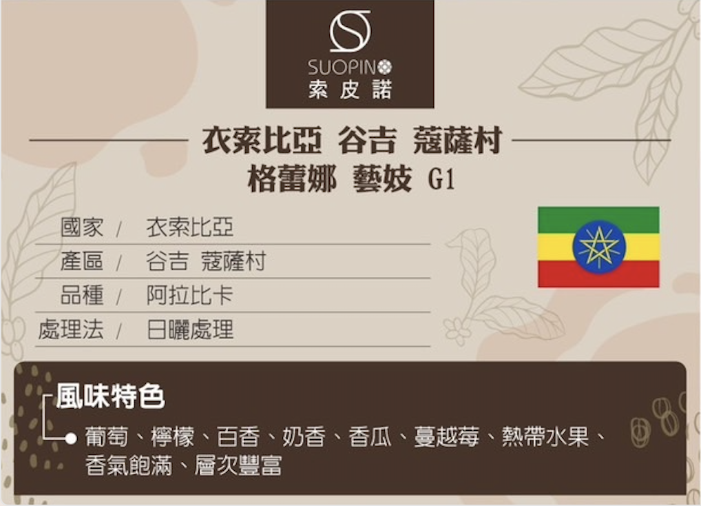 衣索比亞 谷吉 蔻薩村 格蕾娜 藝妓 G1 水洗 淺中焙